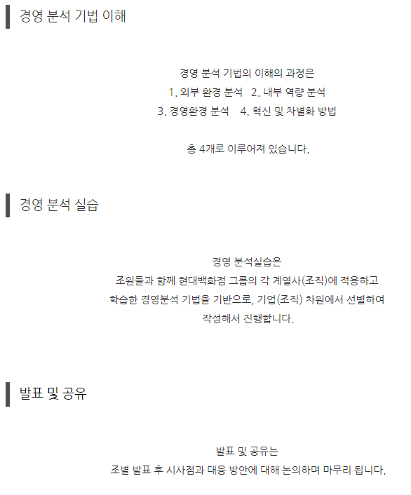 1.과정명: 현대백화점그룹 2년차 입문교육 2차