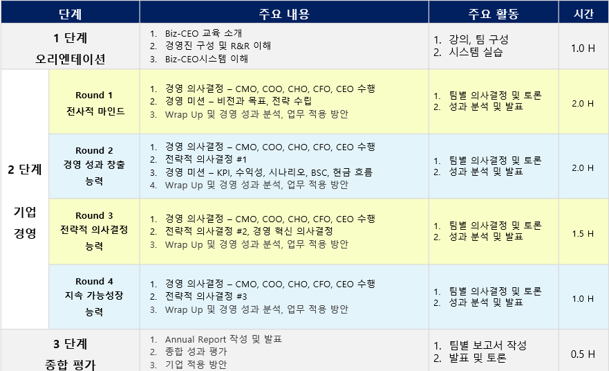교육목적: 경영의사결정 시뮬레이션을 통한 경영자적 마인드 함양